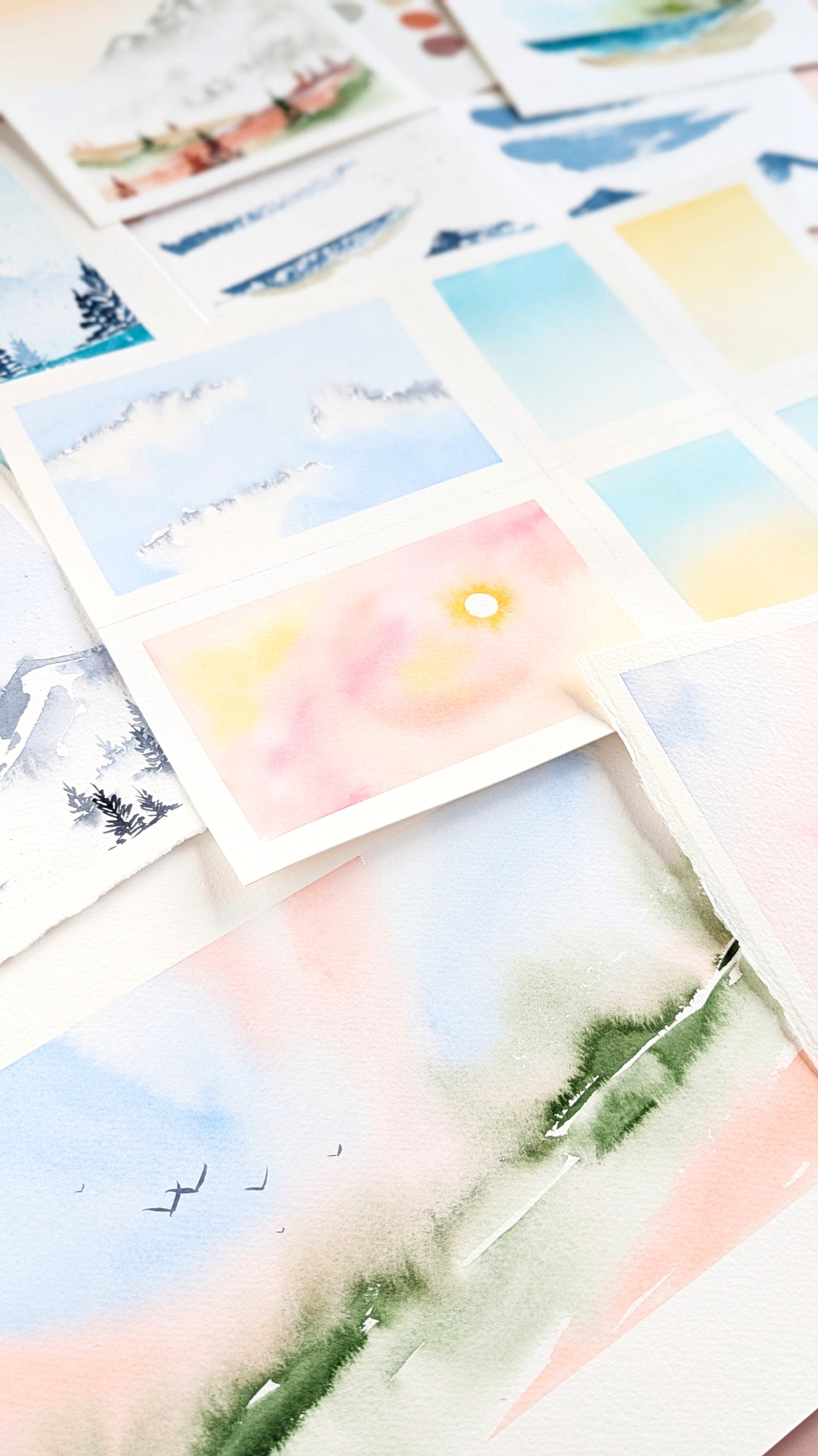 Discover watercolour through minimalist and colourful landscapes!