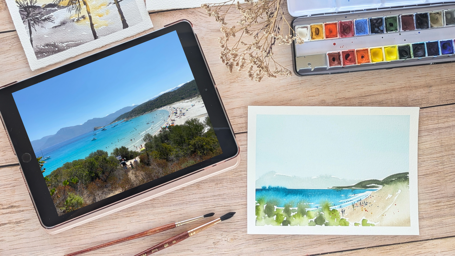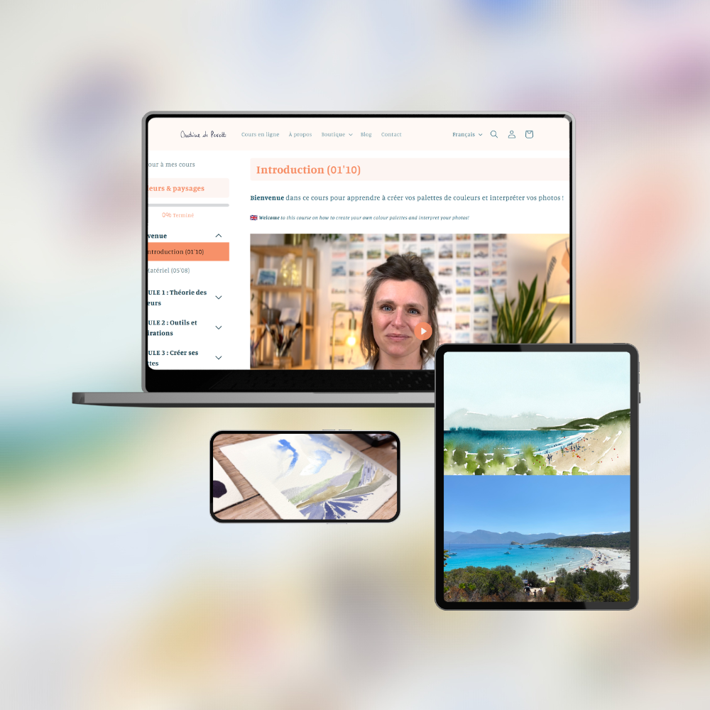 The Colours & Landscapes course will teach you how to create striking and harmonious color palettes, and how to interpret and simplify photos to paint them in a modern, minimalist style.